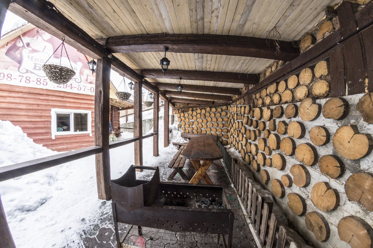 Преимущества: Удобные полки в парилке, душевые, бесплатный чай, кружки, лавки в зоне мангала